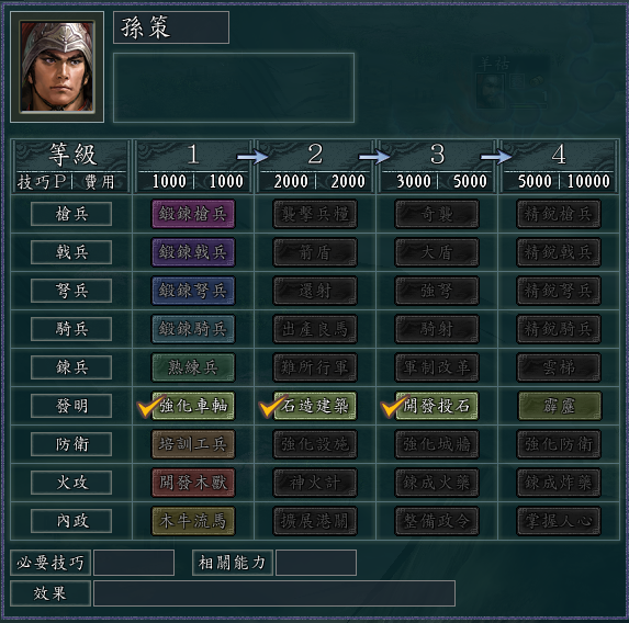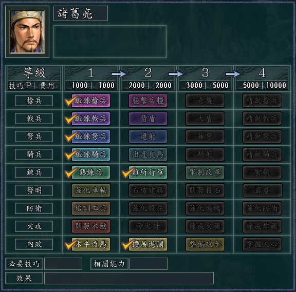 並且每個勢力提供10,000點技巧值不必在遊戲進行中學習