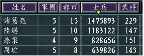 | 1 | 陸遜 | 周瑜 | 孫策 | 諸葛亮 | 趙雲 |