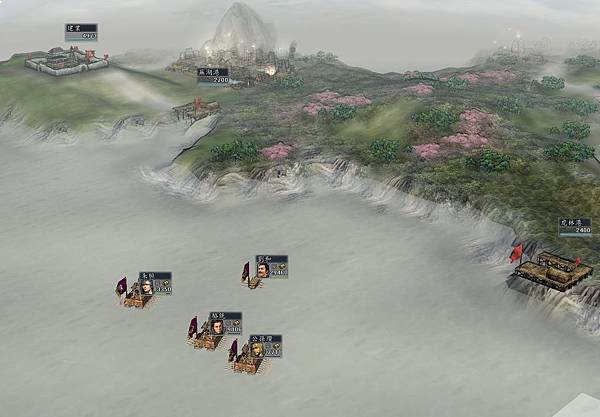 同時成公英、龐會也從陸上森林進發,水陸並進