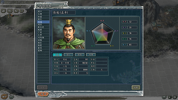 | 19 | 郝昭 | 法正 | 孫權 | 張任 | 劉備 |