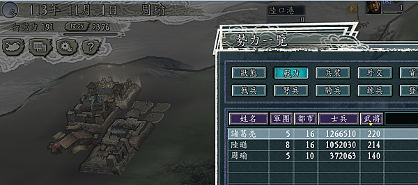 (註:雖然治安為0時,沒有名聲的話,以周瑜的江陵人才而言